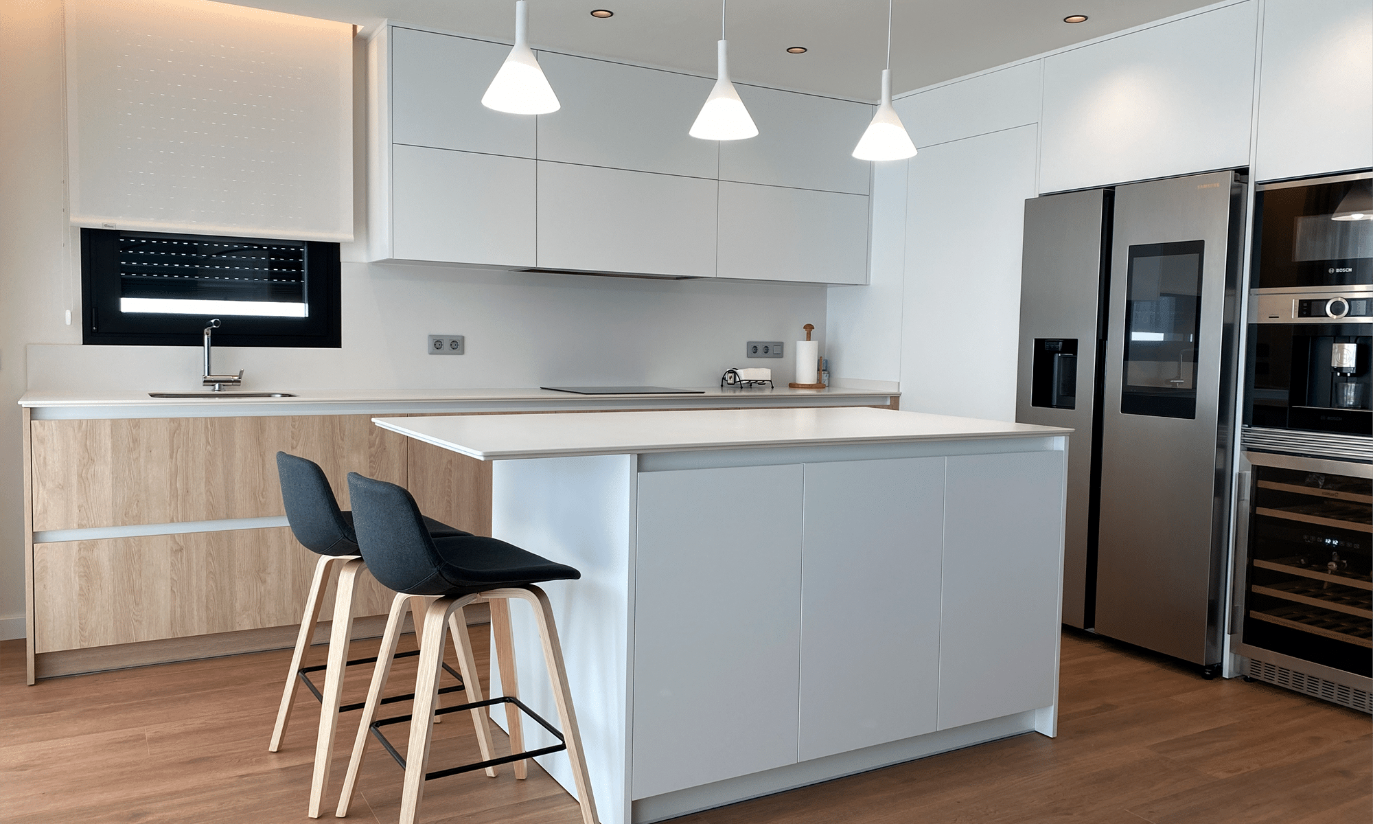 5.-Cocina con isla central con extensión para zona de desayuno