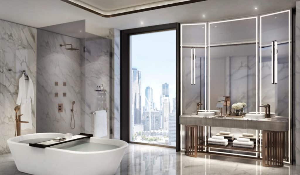 Grifos que ahorran agua, superficies sin químicos y baldosas respetuosas son las novedades para el baño en 2018.