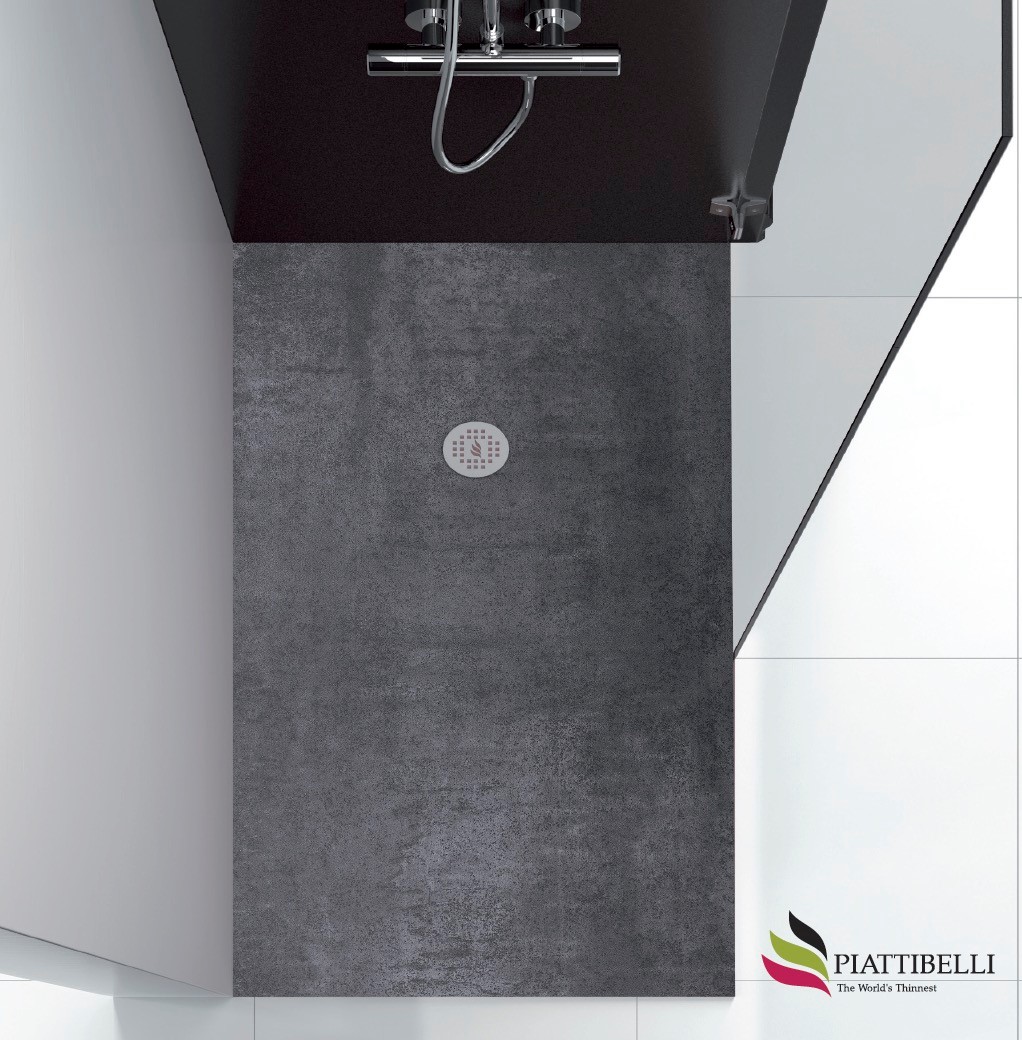 Los platos de ducha Piattibelli se fabrican con NEOLITH, un material de superficie compacta sinterizada de cargas 100% naturales y reciclables que no sufre ninguna alteración durante el proceso de producción, gracias a la tecnología de fabricación Ultra Slim, un sistema patentado único en el mercado en el que se moldea la materia prima para conseguir un producto de solamente 18 mm de grueso.